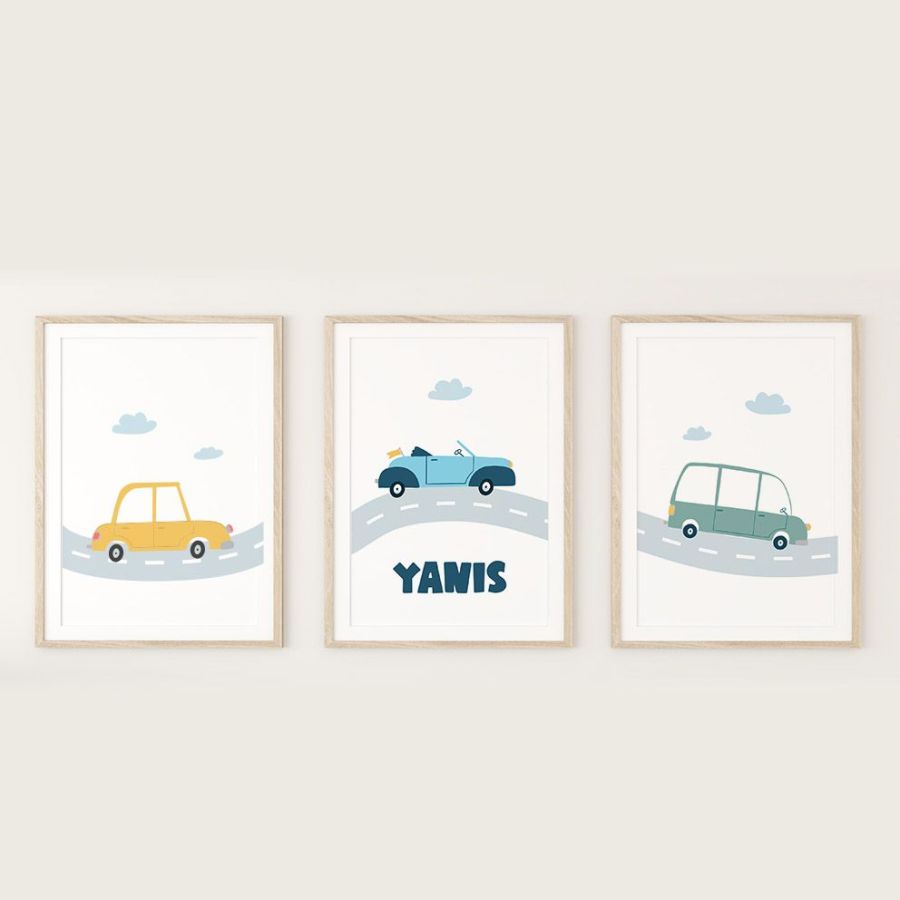 Je vous propose ces 3 affiches illustrées dont l'une des 3 est personnalisée avec le prénom de votre enfant.