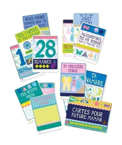 - 14 cartes du déroulement de la grossesse ( cartes indiquant le nombre de semaines, nous savons que tu es une fille/un garçon, ta chambre…)