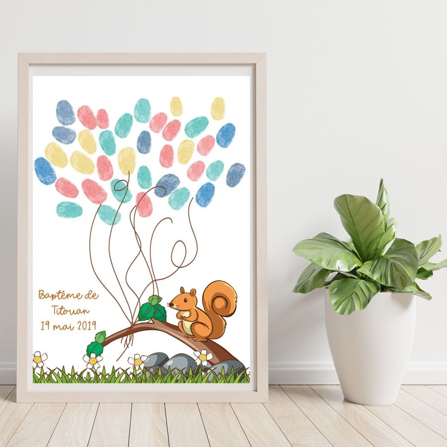 Affiche à empreintes Ecureuil pour baptême | Version digitale
