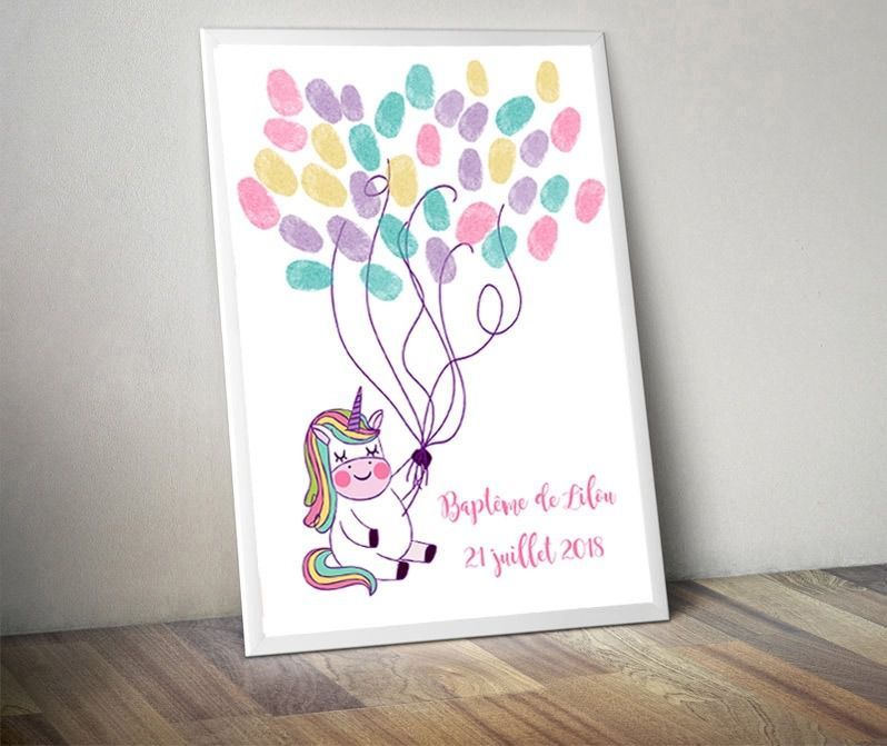 Affiche à empreintes Licorne pour baptême | Version digitale