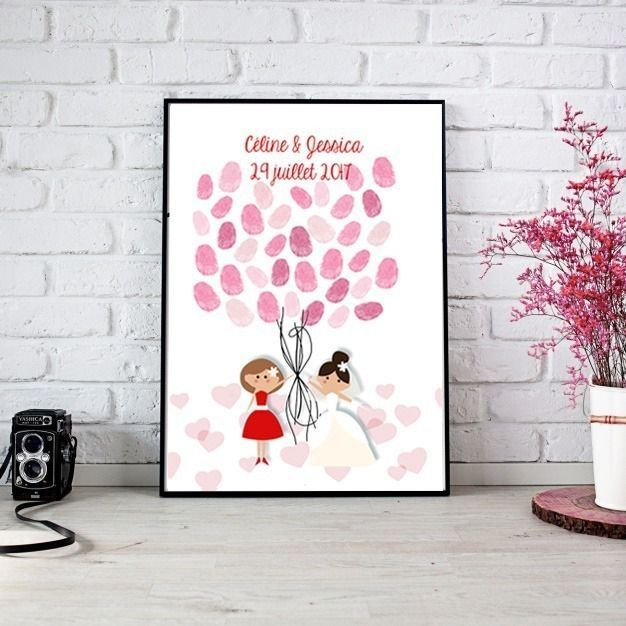 Affiche à empreintes pour mariage de 2 femmes - Mariage gay lesbien | Version digitale