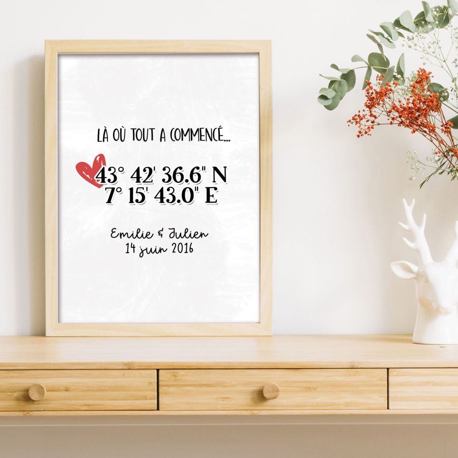 A personnaliser avec les coordonnées GPS de la ville et vos prénoms, une date, un petit texte...