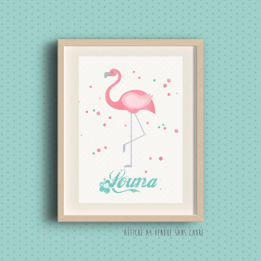 Affiche à encadrer pour chambre d'enfant - Flamand rose tropical