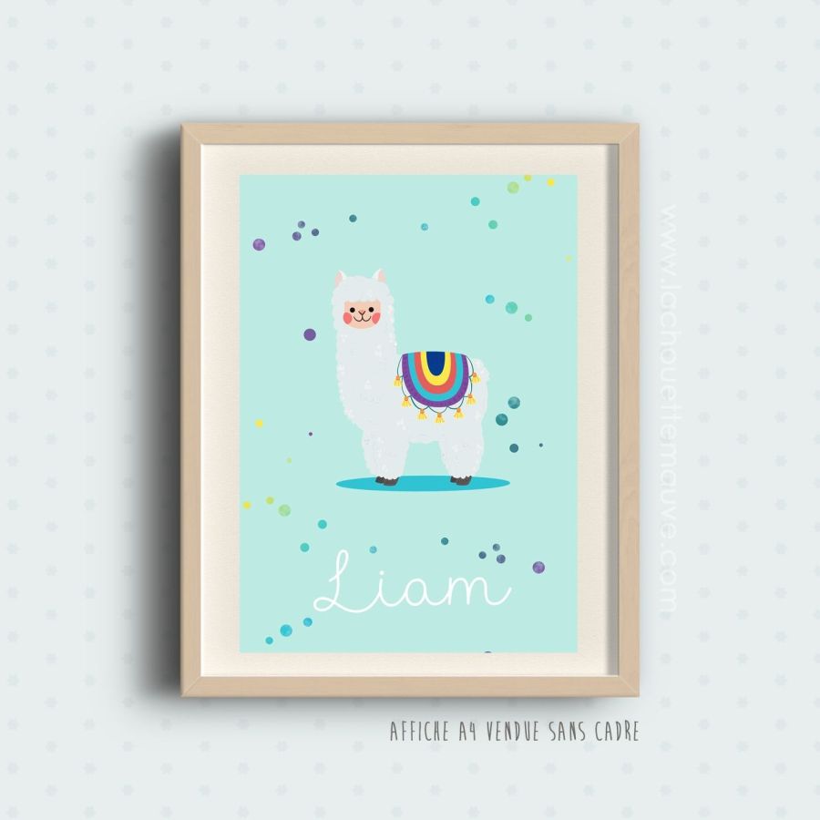 Affiche à encadrer pour chambre d'enfant - Liam - Lama