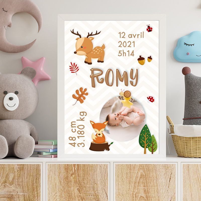 Je vous propose de mettre en page cette jolie affiche de naissance imprimée, à mettre sous cadre (cadre non inclus dans la vente).