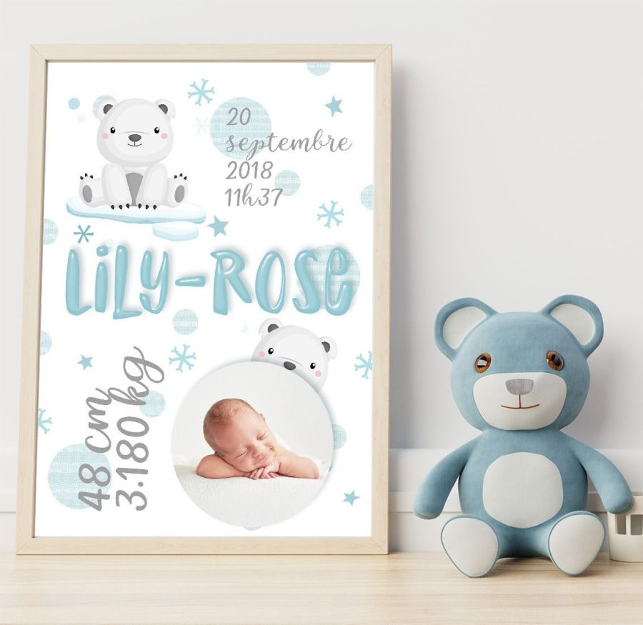 Je vous propose de mettre en page cette jolie affiche de naissance imprimée, à mettre sous cadre (cadre non inclus dans la vente).