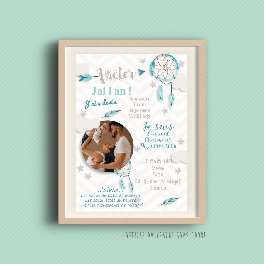 Affiche souvenir de 1 er anniversaire Attrape rêves