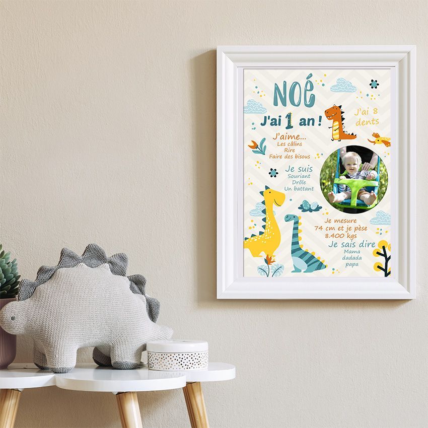 Affiche souvenir de 1 er anniversaire Dinosaures