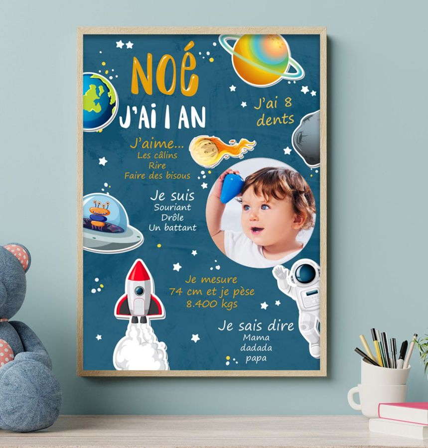 Je vous propose de mettre en page avec les infos de votre enfant cette jolie affiche pour le 1er anniversaire de votre enfant.