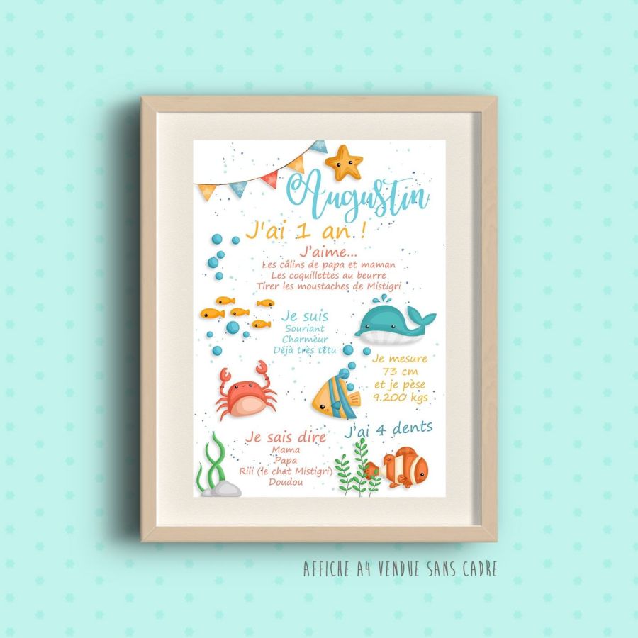Affiche souvenir de 1 er anniversaire thème Marin