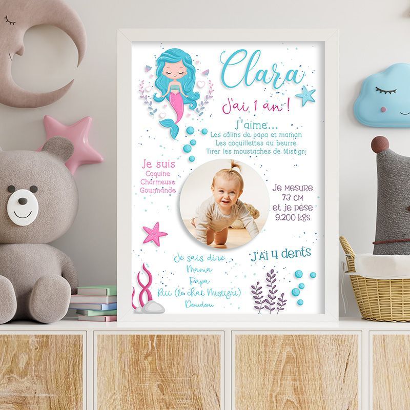 Affiche souvenir de 1 er anniversaire thème Sirène