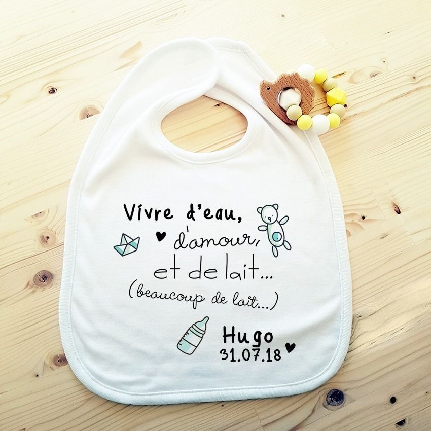 Grand bavoir pour bébé, original et personnalisable avec le prénom et la date de naissance de bébé !