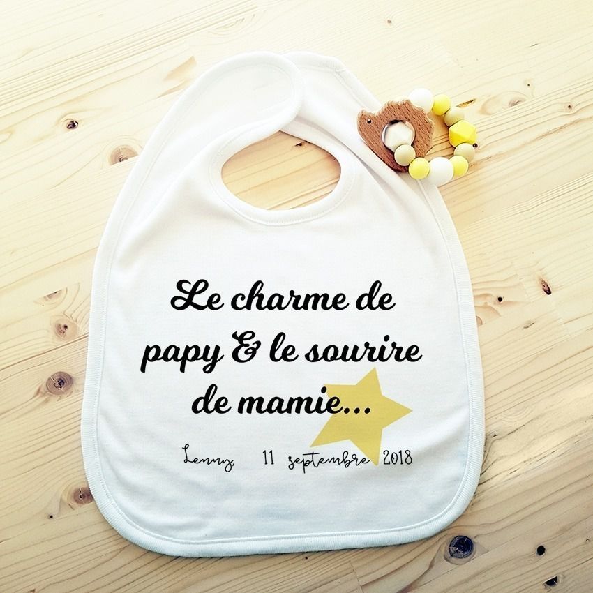 Grand bavoir pour bébé, original et personnalisable avec le prénom et la date de naissance de bébé !