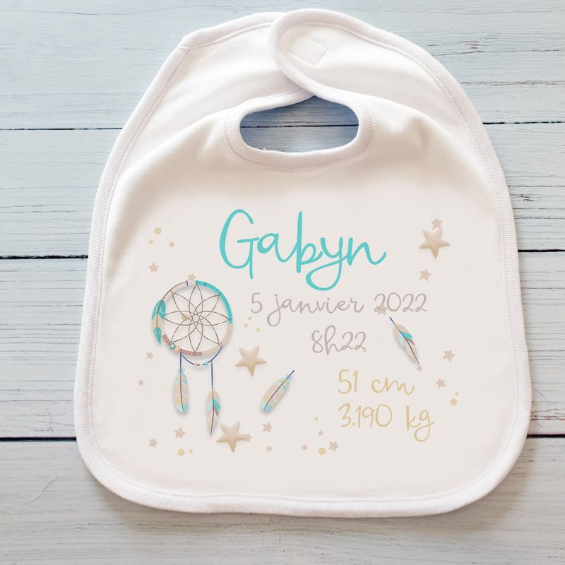 Bavoir personnalisable Naissance Attrape rêves bleu