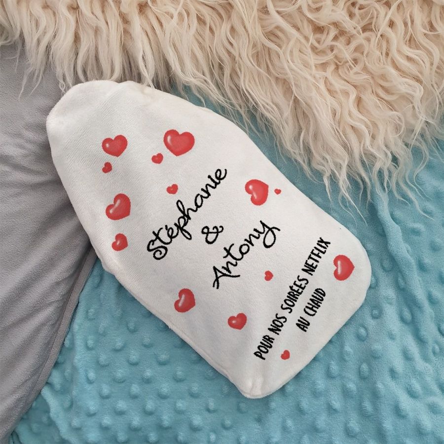 Bouillotte des amoureux personnalisable- Cadeau original pour son amoureux(se) ! Coeur