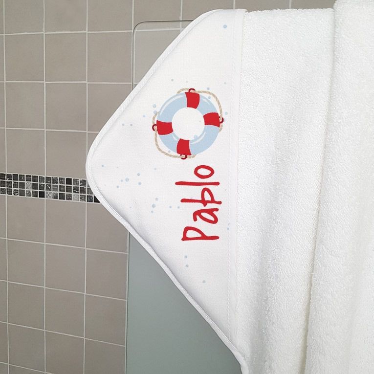 Cape de bain personnalisée en éponge | pour enfant | avec prénom | modèle Bouée