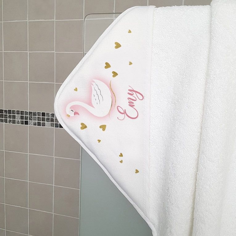 Cape de bain personnalisée en éponge | pour enfant | avec prénom | modèle Cygne