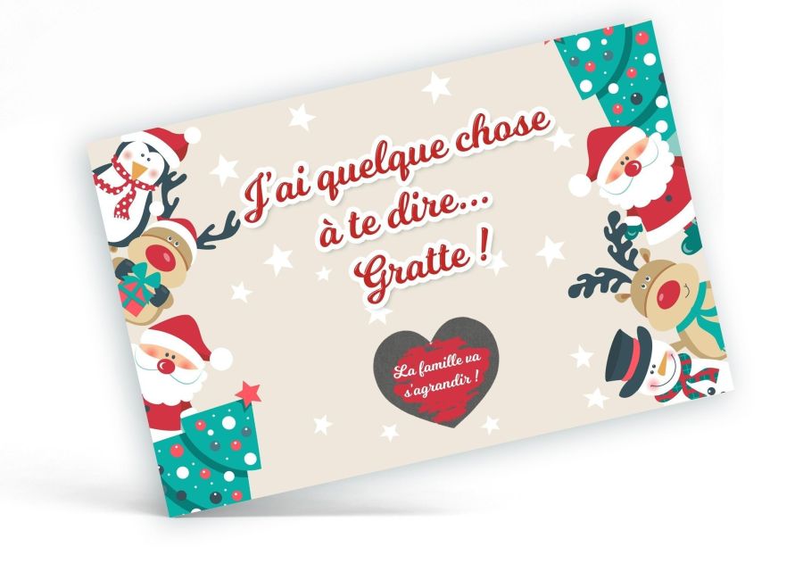 Carte à gratter Noël "J'ai quelquechose à te dire !"|La famille va s'agrandir|Annonce grossesse