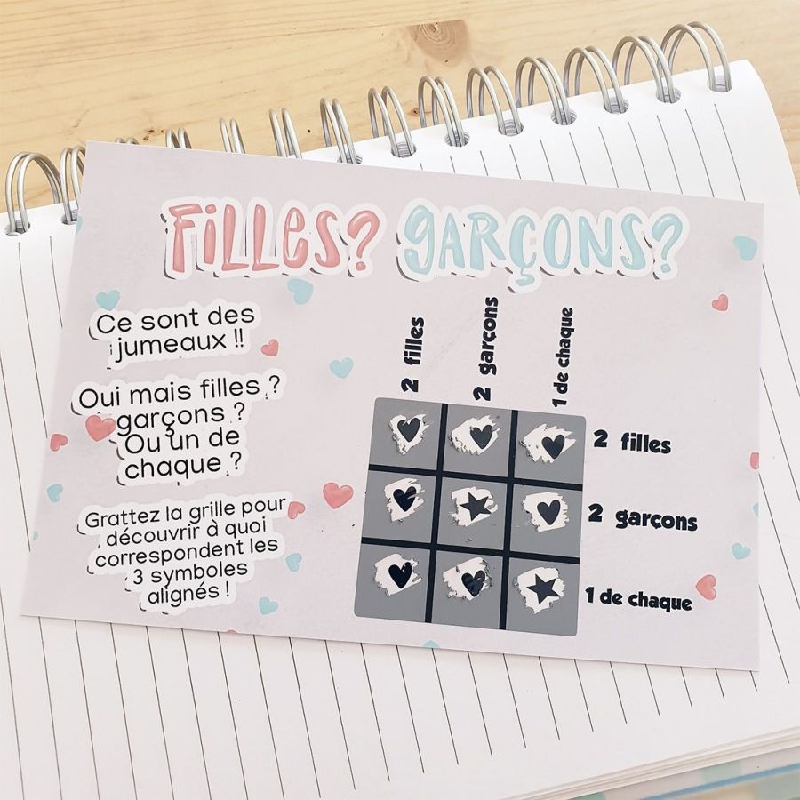 Carte Morpion à gratter pour faire découvrir les sexes des JUMEAUX !|annonce sexe du bebe