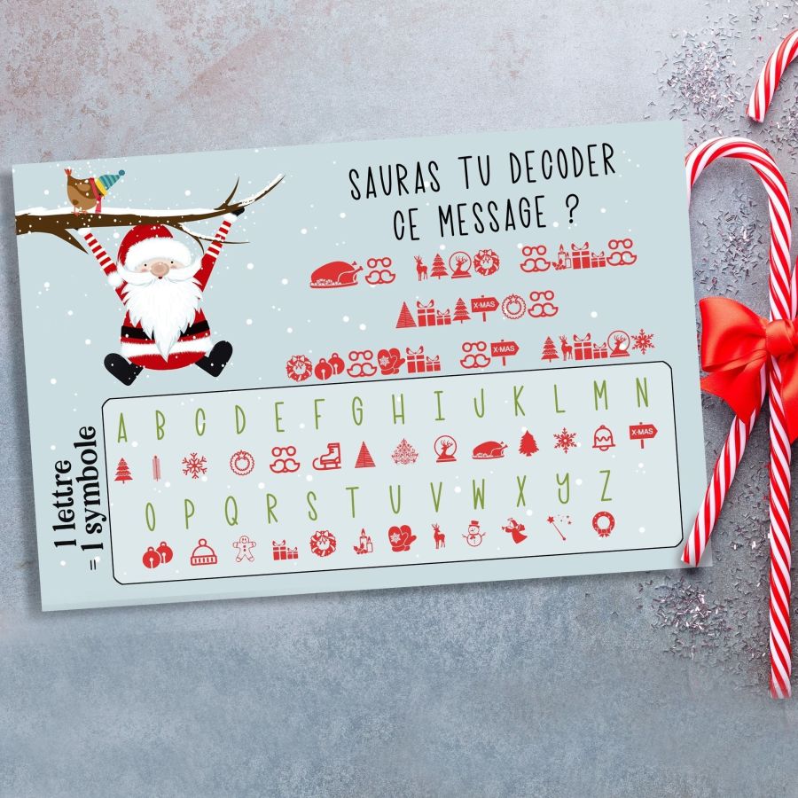 Carte personnalisable "Sauras tu décoder ce message ?" Spécial Noël
