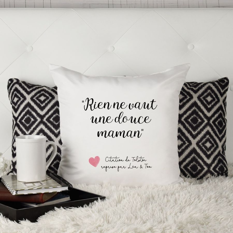 Coussin avec citation & inscription Citation de Tolstoï reprise par ... prénom des enfants ! Une idée de cadeau originale !