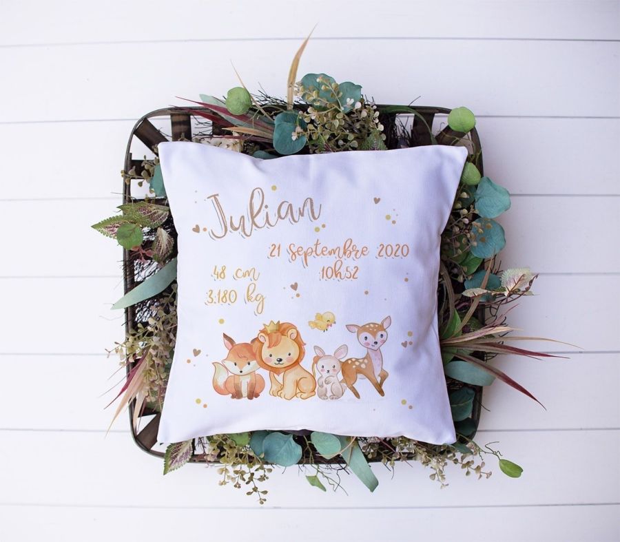 Le coussin mesure 35x35cm et la surface imprimée environ 25x25cm