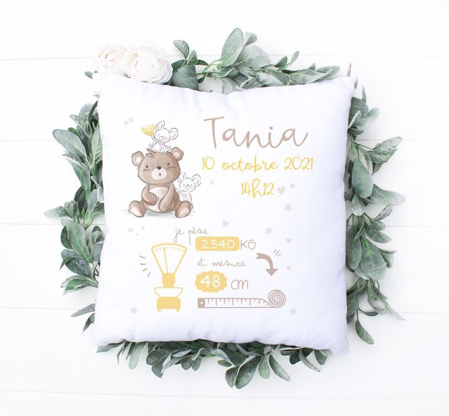 Coussin personnalisé naissance Ourson