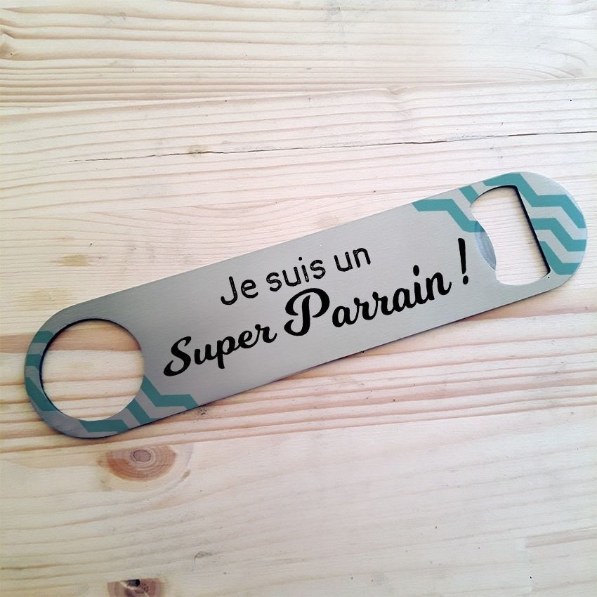 Décapsuleur en inox recto verso Super parrain.