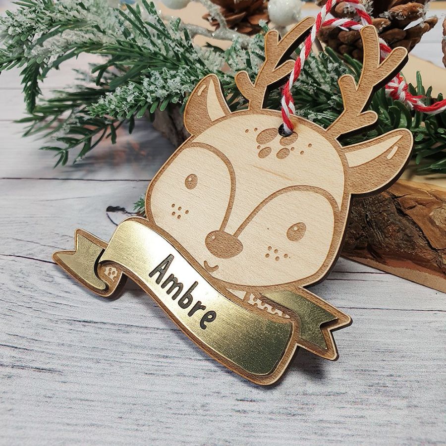 Décoration de noël en bois personnalisée originale et bi matière