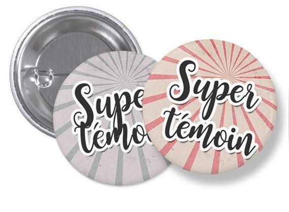 Lot de 2 badges Super témoin à offrir à vos supers témoins en surprise et qu'ils pourront garder en joli souvenir.