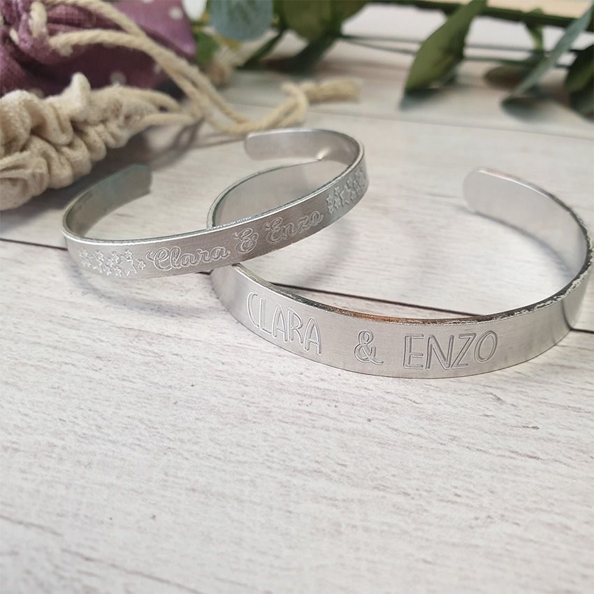 Duo de Bracelets gravés et personnalisés avec prénoms ou petit texte