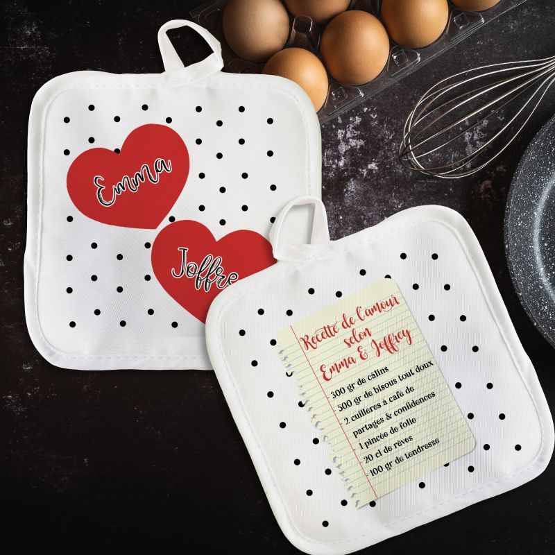 1 x Maniques personnalisées de cuisine pour amoureux(ses)_Motif recette & pois