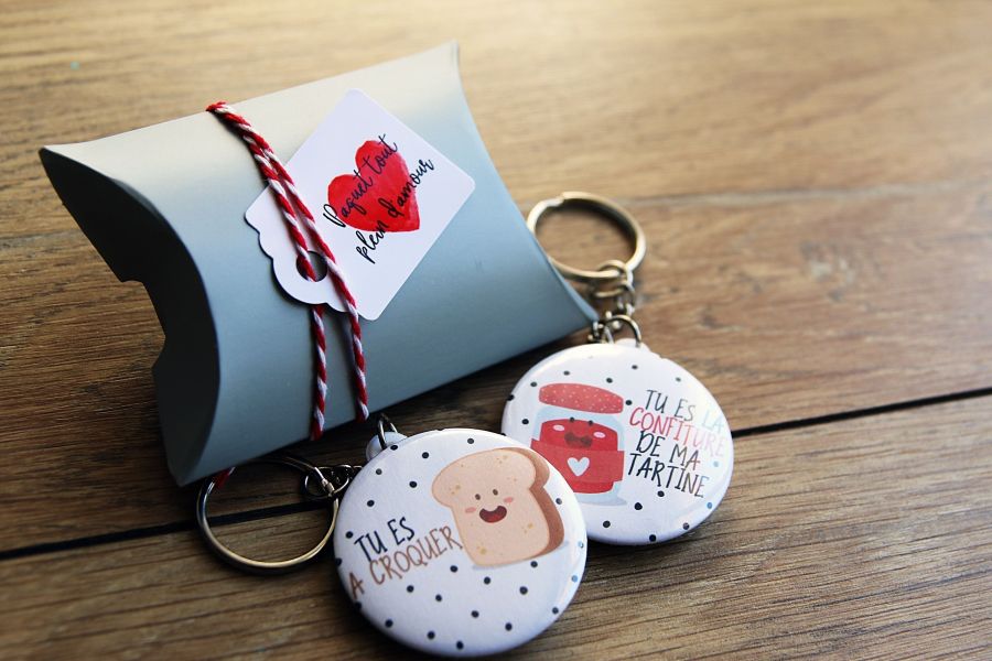 Duo de porte-clés pour amoureux "Tartine & confiture"