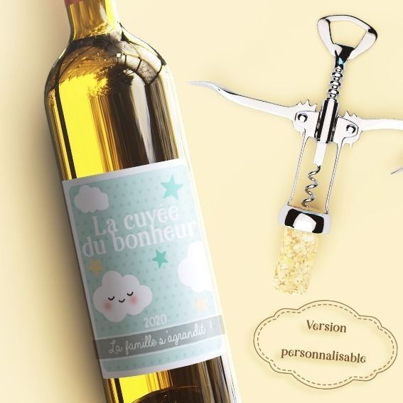 Etiquette bouteille vin personnalisable pour annonce de grossesse