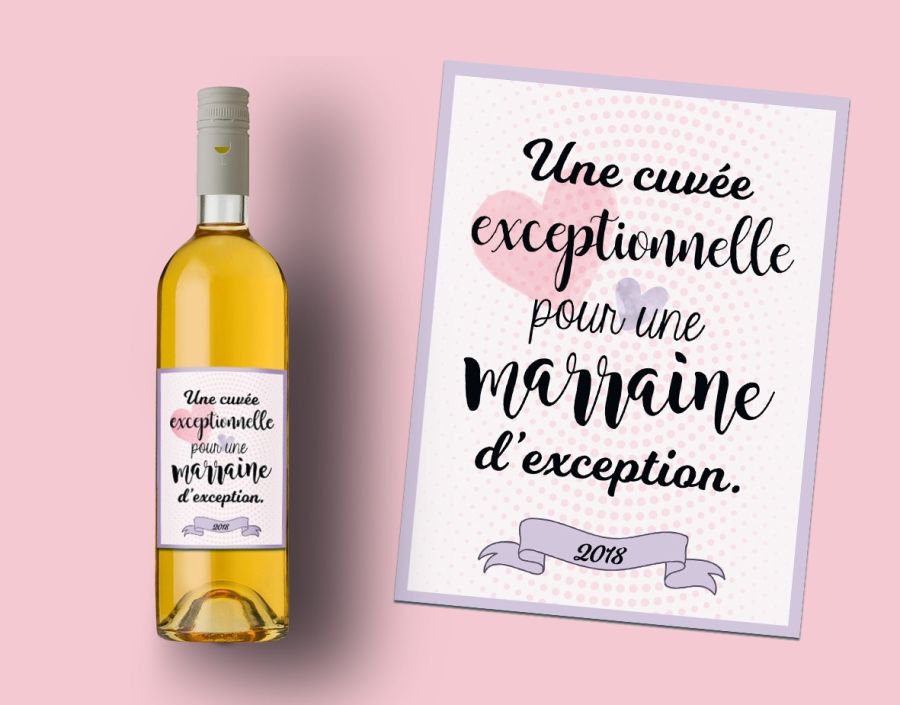 Etiquette bouteille vin pour marraine exceptionnelle