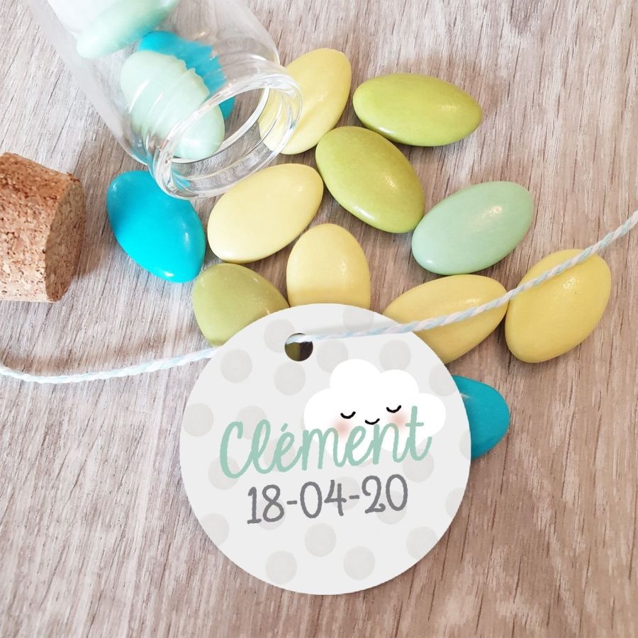 Etiquettes dragées personnalisées baptême /mariage / anniversaire Nuage version bleu