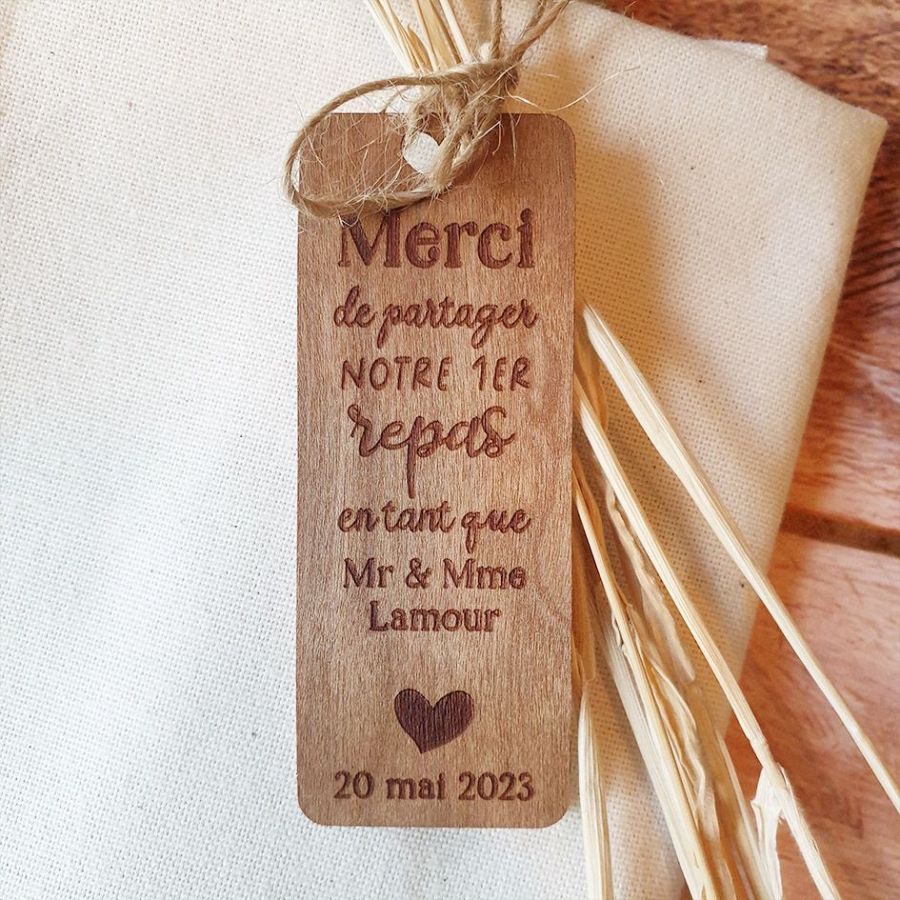 Adorables étiquettes en papier bois à accrocher à vos couverts pour remercier vos invités.