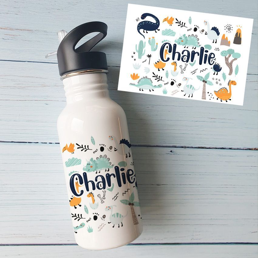Gourde ou bouteille personnalisée pour enfant modèle Dinosaures