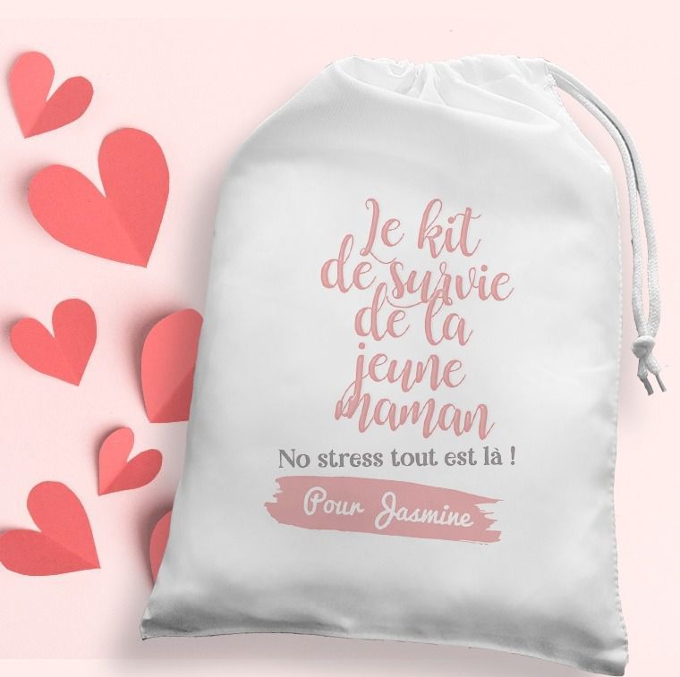 La pochette de survie personnalisée avec son prénom par la chouette mauve, permettra de glisser à l'intérieur les accessoires que vous aurez sélectionné et permettra à la future maman de les avoir à porter de main et de les retrouver facilement une fois à la maternité!