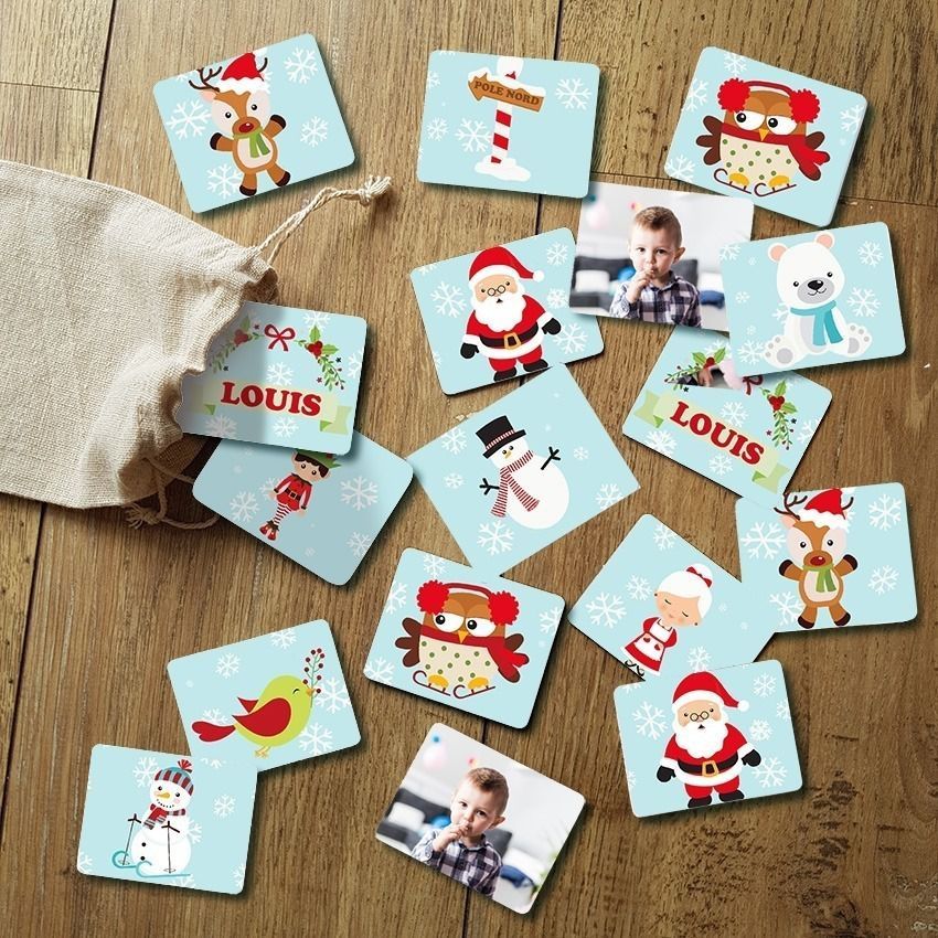 Jeu de mémoire modèle Noël personnalisé avec photo & prénom de l'enfant (30 pièces)