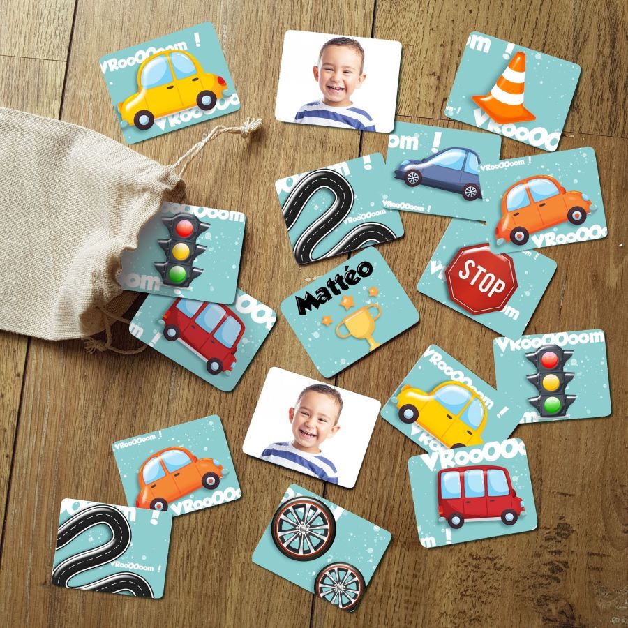 Jeu de mémoire modèle Vroom personnalisé avec photo & prénom de l'enfant (30 pièces)