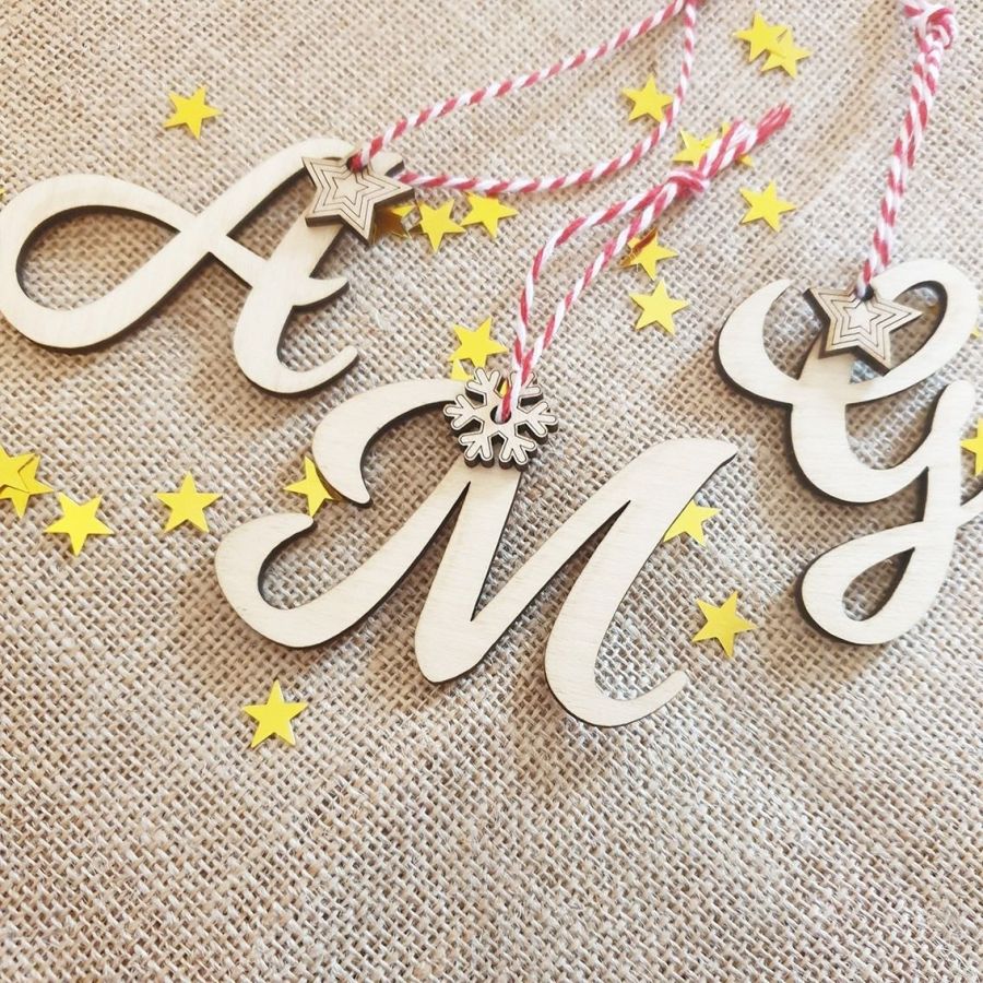 Décoration de noël en bois personnalisée, en forme de lettre de votre choix.