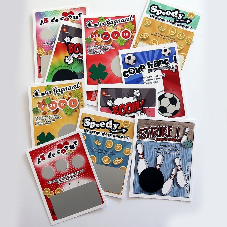 Je vous propose un pack comprenant un mix aléatoire de 10 tickets de jeu ayant tous le texte "La famille va s'agrandir" ou "La famille s'agrandit!".