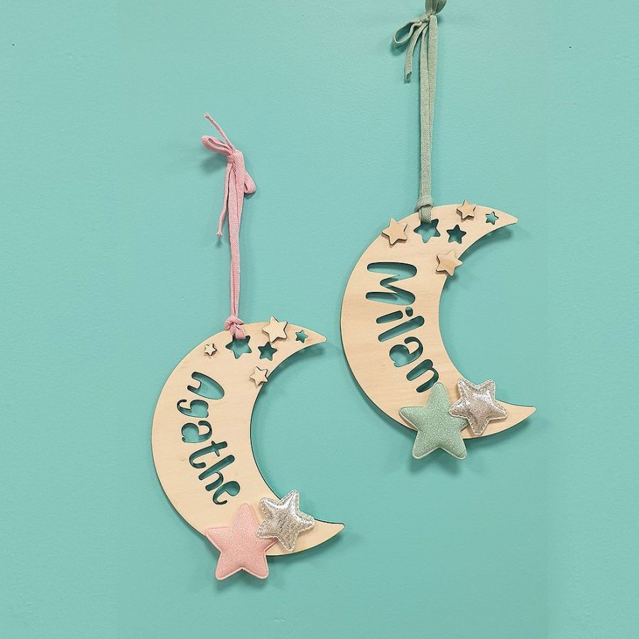 Lune en bois personnalisée avec prénom - Chambre enfant