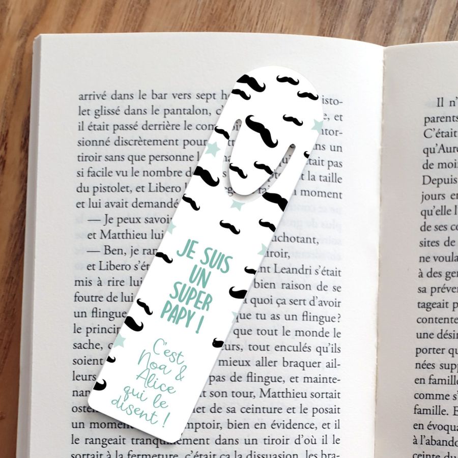 Marque page personnalisé Super Papy/tonton/parrain/papa moustaches