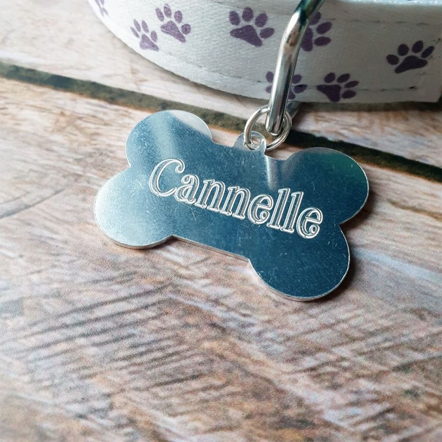 Médaille gravée pour votre animal avec par exemple son nom d'un coté et votre numéro de téléphone au verso pour être facilement contacté au cas où il se perdrait.