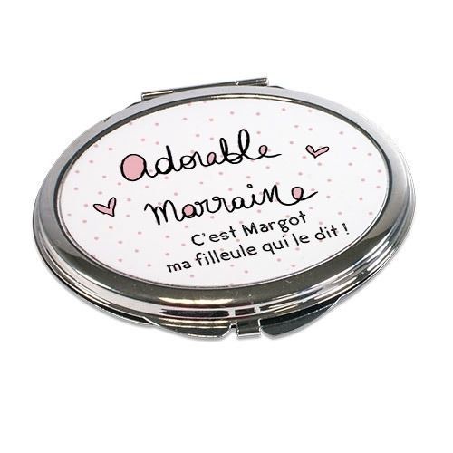 Miroir de poche personnalisable "Adorable marraine" (+ pochette coton en cadeau)