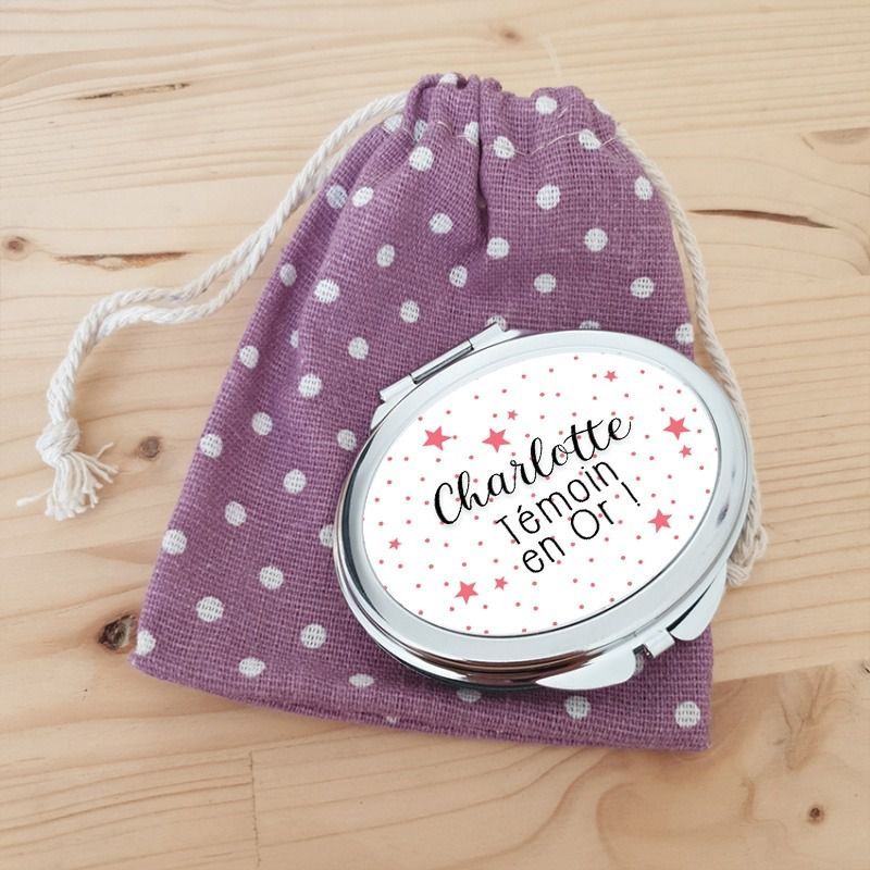 Miroir de poche personnalisable "Témoin en or" (+ pochette coton en cadeau)