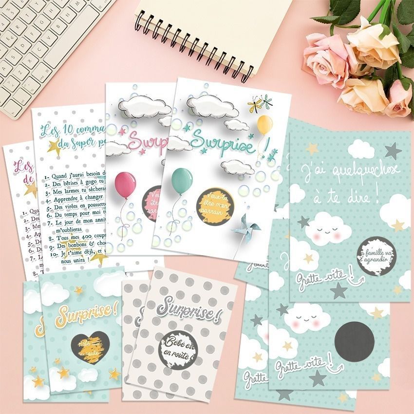 - 2 cartes à gratter pour les demandes au parrain/marraine