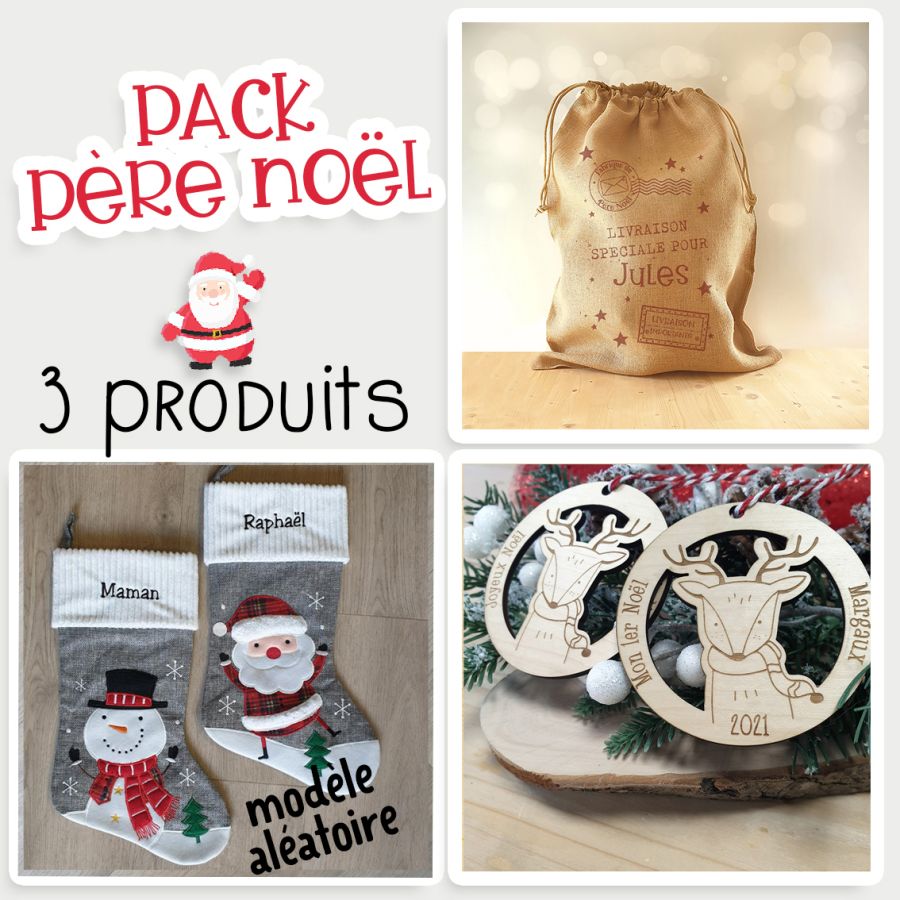 Pack Père Noël personnalisé - Hotte - chaussette - décoration